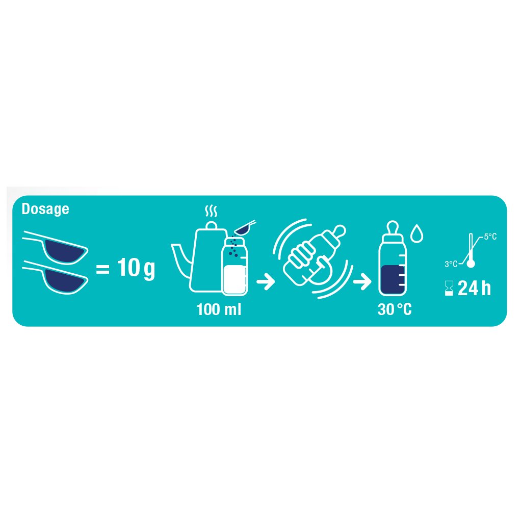 Příprava a použití: Smíchejte 2 odměrky se 100 ml převařené, vychlazené vody. Dobře